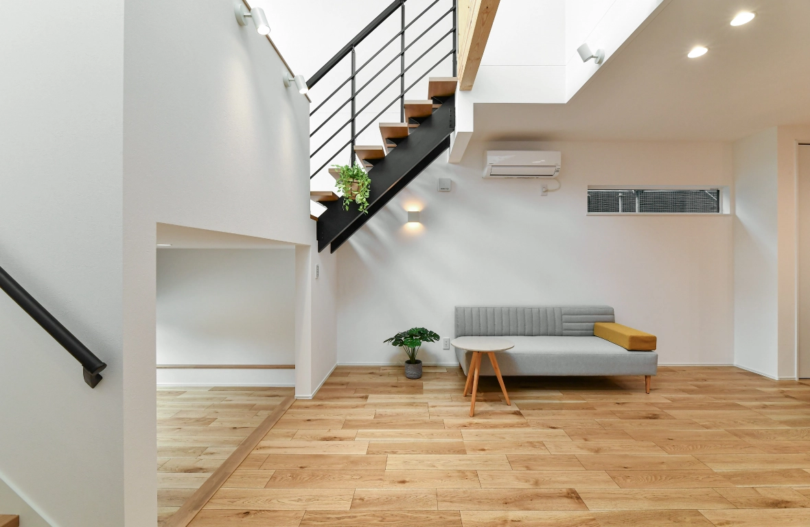 吹抜け・スキップフロア・フリースペースが設けられており、広がりのある空間設計になっています。