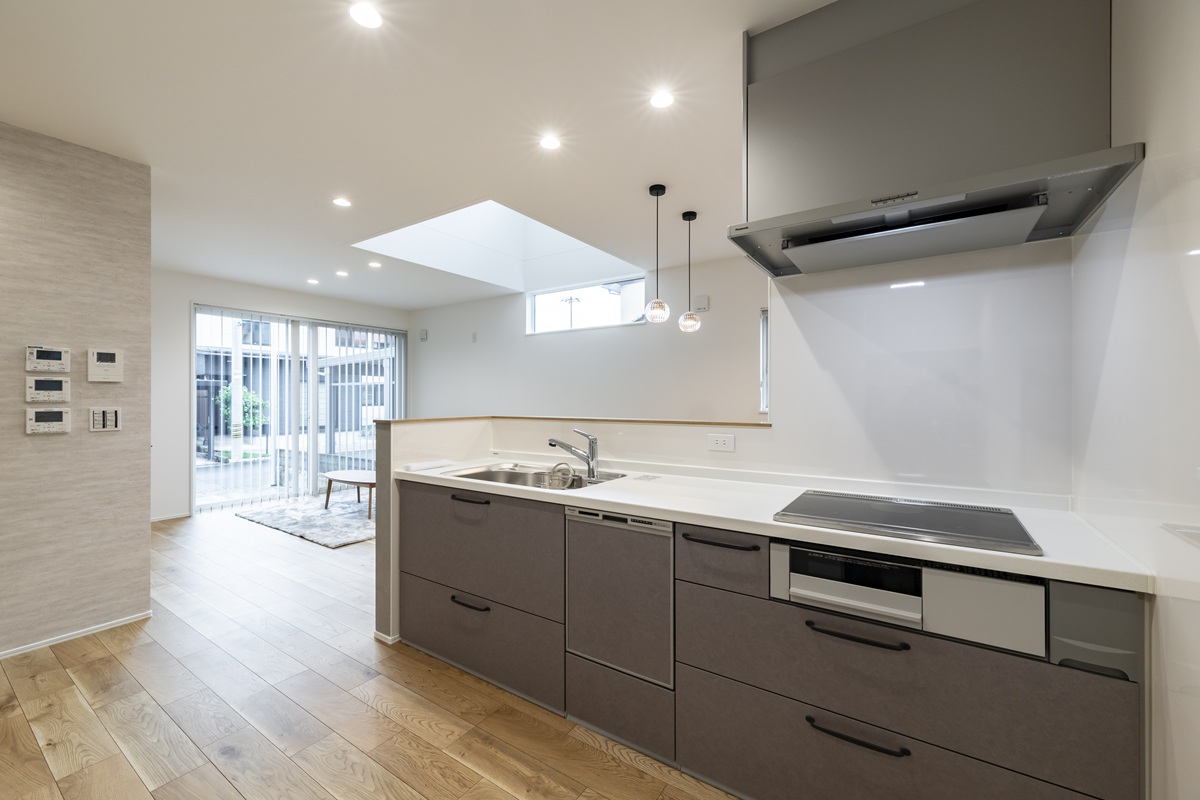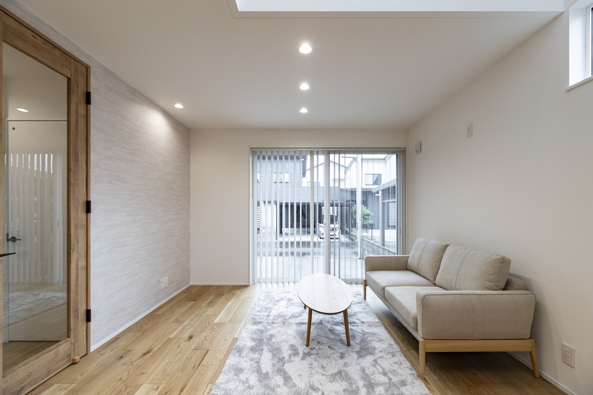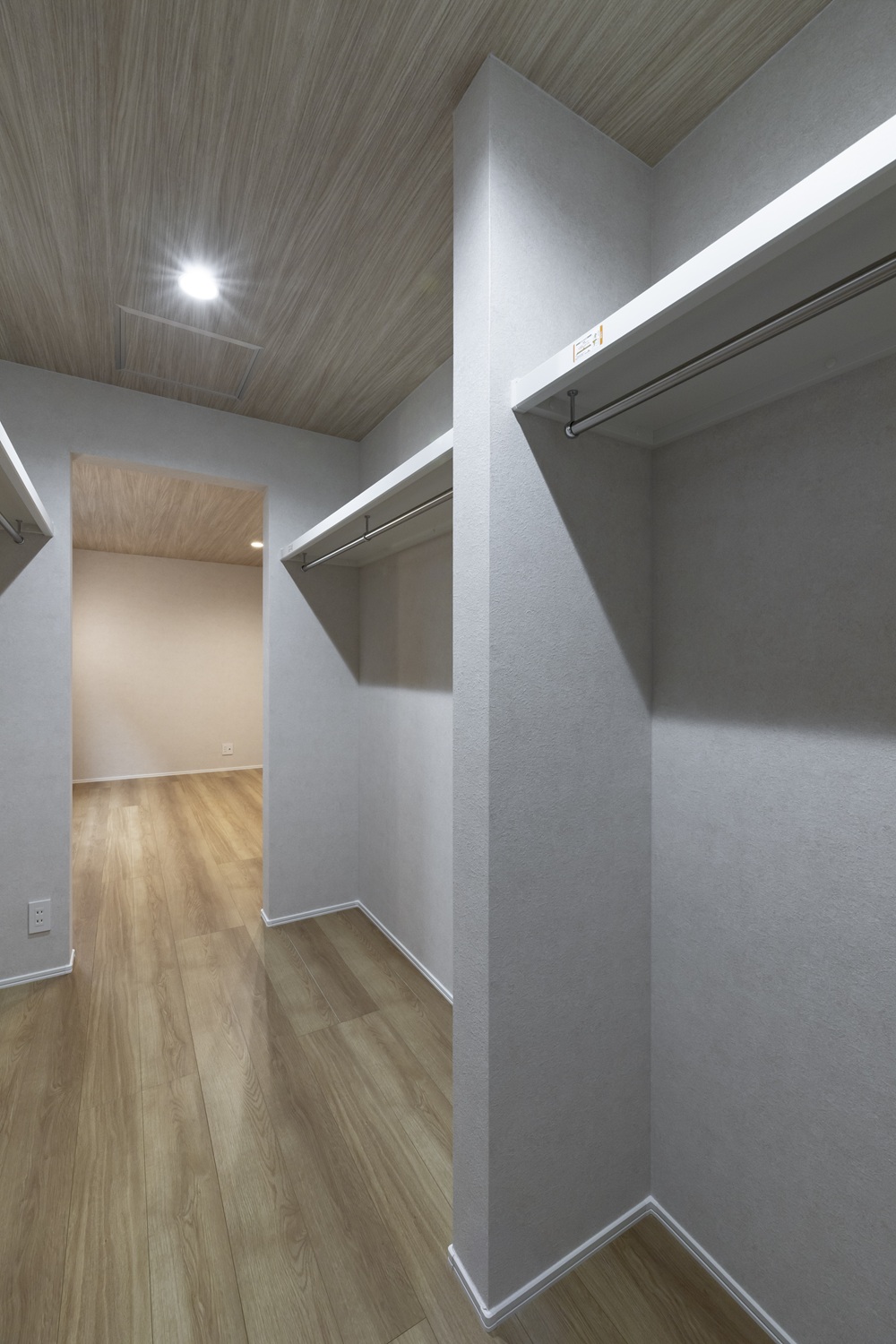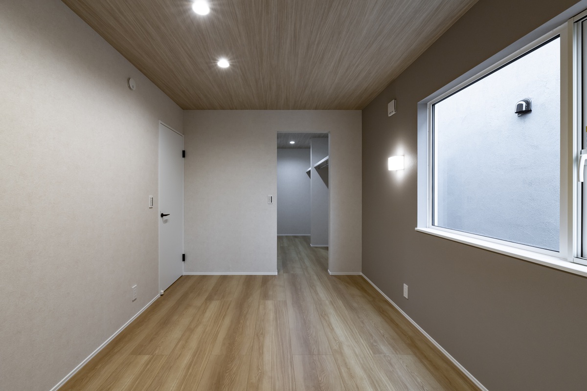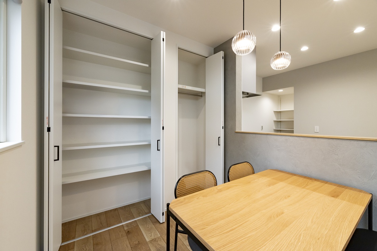 本体価格 1,980万 ・2F-4Aプラン ・間取り 3LDK ・建物面積 97.29㎡ TAG #ランドリールーム #吹抜け #スタイリッシュ 塗り壁と木板コントラスト 大開口窓 キッチン裏、階段下スペースを生かしたパントリー 洋室 4畳の大型WIC