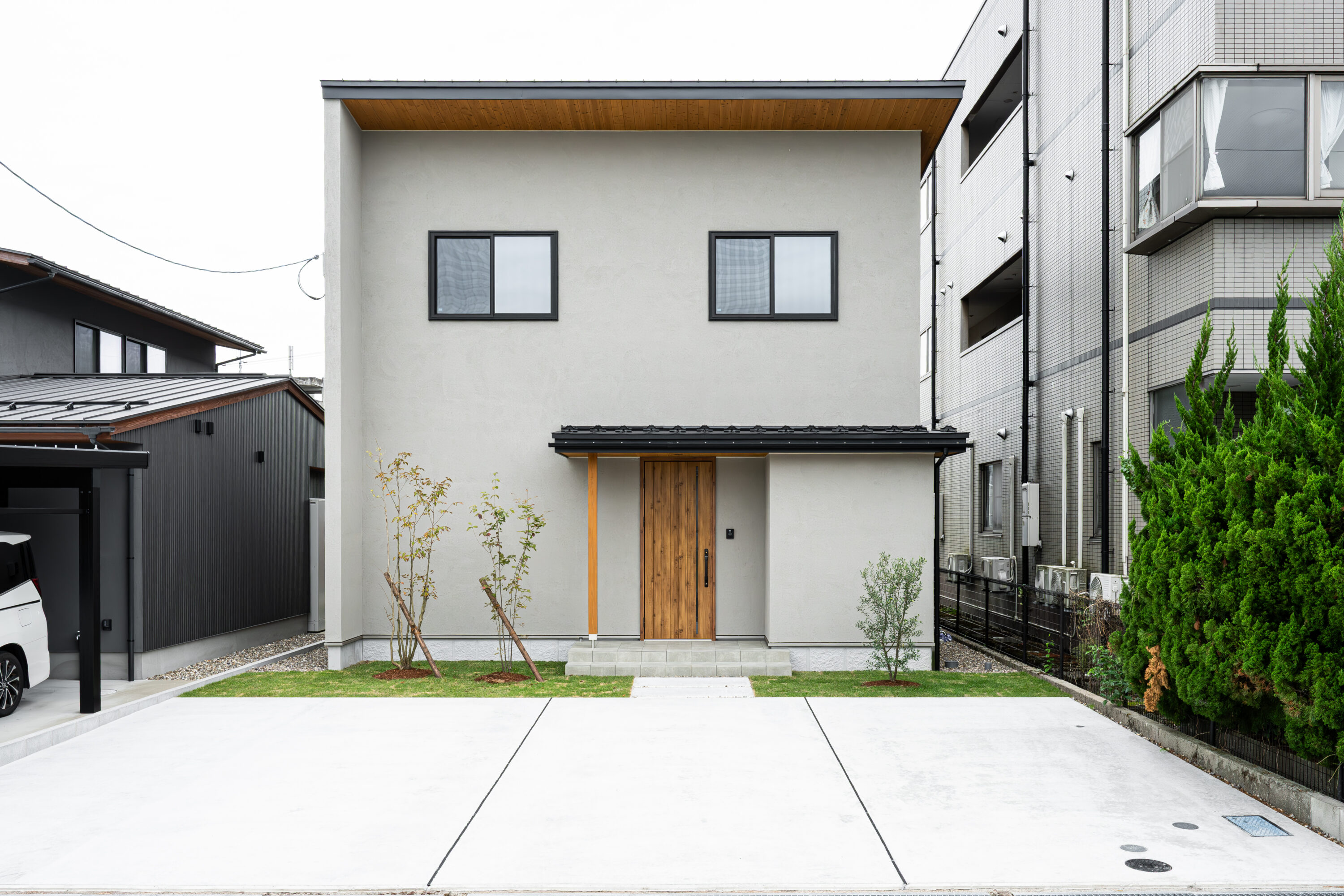 塗り壁と植栽グリーン
