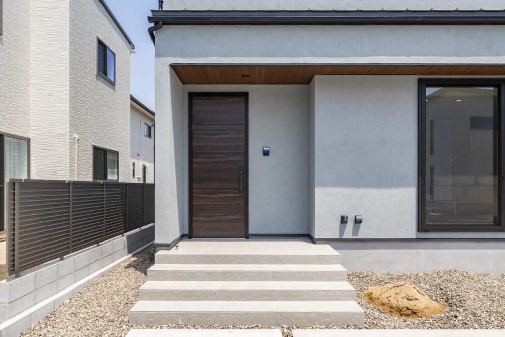 装飾を抑えた直線的なデザインのすっきりした玄関。